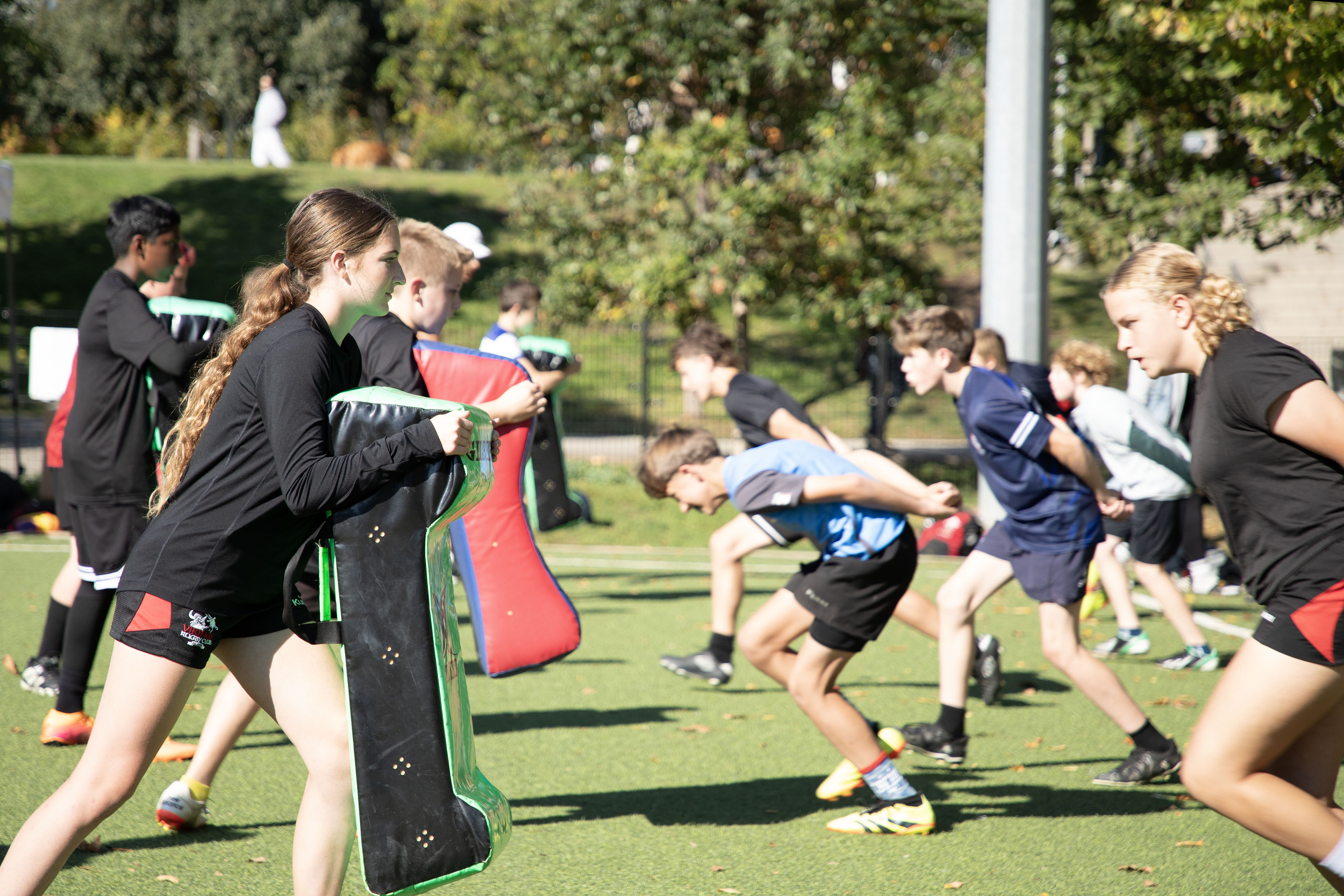 Smaller group sessions focused on developing specific technical areas including tackling technique, ball handling, positional awareness, and decision-making.